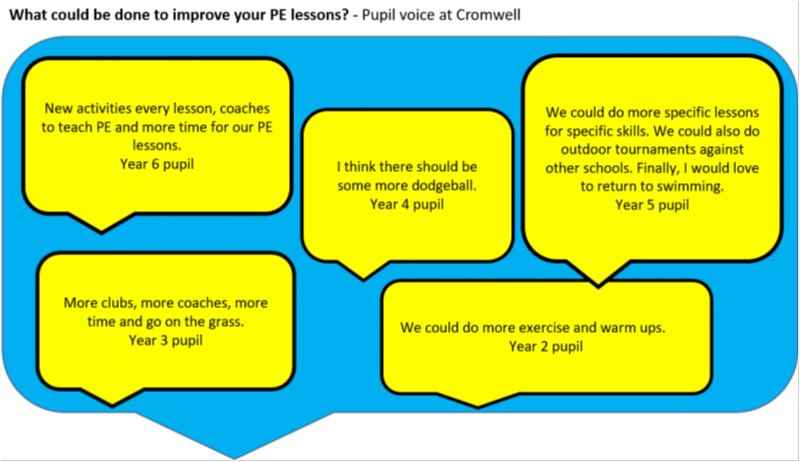 At Cromwell Learning Community Multi Academy Trust, the Physical Education curriculum covers: Games, Striking and Fielding, Gymnastics, Dance, Athletics, Outdoor and Adventure activities and Swimming. Key Stage 2 pupils also work on personal best challenges which help them to improve their performance in fundamental skills and find ways to improve their performance in sports activities.